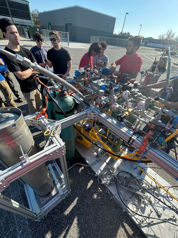 I have worked with our complex fluid system by addressing FOD issues and safety issues. This includes adding filters inline with our GN2 tanks into the fill tanks, mounting for LOX vents, and others. I also changed the way we pipe-taped all our future fittings. My other contributions include reassembly and testing of pneumatic ball valves, hotfire procedure creation, P&ID creation, test controlling and responsibility, plumbing assembly, part managing, and many others.